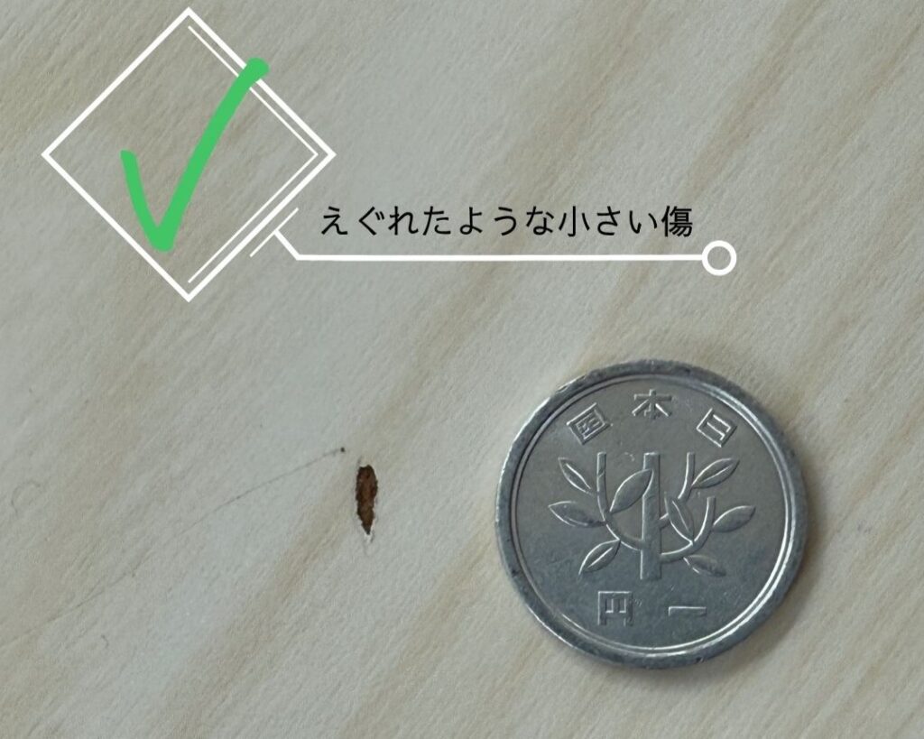 その他、あまりに大きな傷や深い傷は補修費用が発生する場合がございますので、気になる場合は事前にご連絡ください。